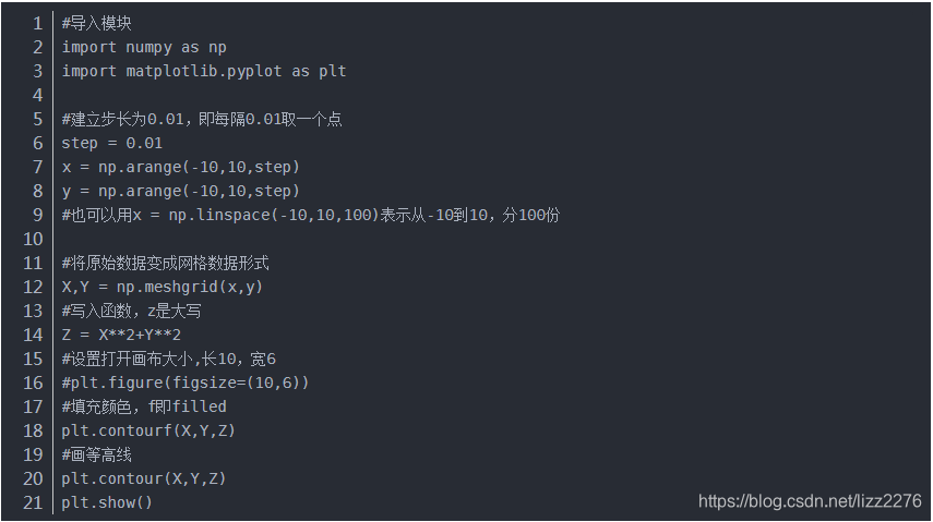 step = 0.01 x = np.arange(-10,10,step) y = np.arange(-10,10,step) #也可以用x = np.linspace(-10,10,100)表示从-10到10,分100份#将原始数据变成网格数据形式